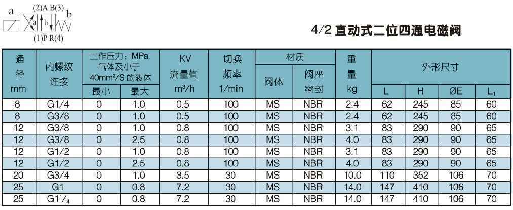 A102ED- SFO 25000系列 直动式二位四通电磁阀